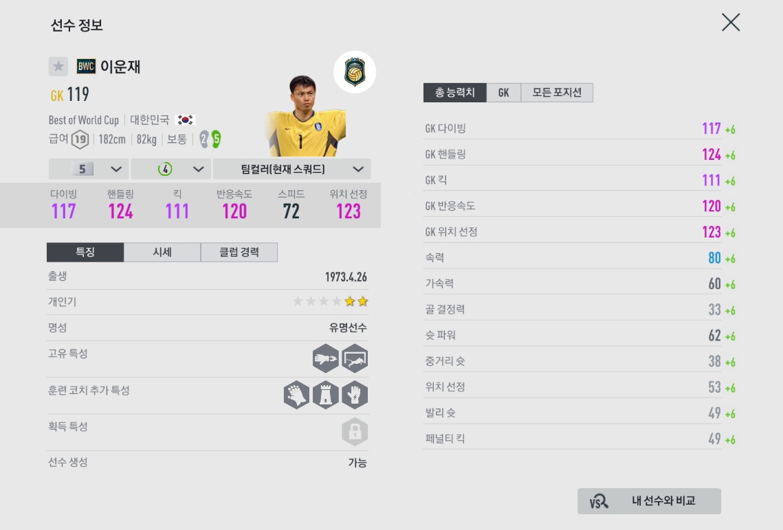 근거리 선방 능력은 좋은데, 키퍼가 이운재인 것을 확인하면 상대가 중거리와 감아차기만 합니다.