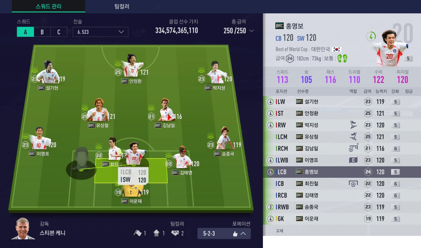 스위퍼 포메이션에 최적화되어 나온 홍명보 시즌입니다.