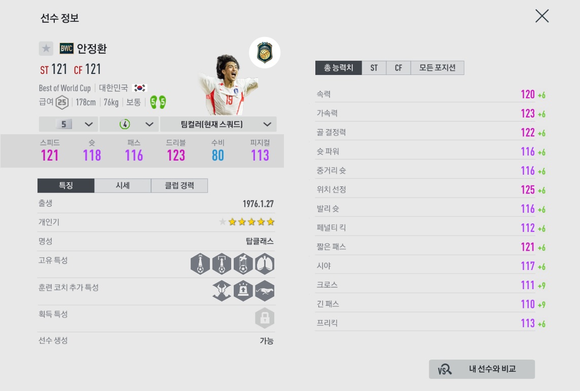 좋은 체감과 준수한 밸런스와 몸싸움을 가지고 있습니다.
