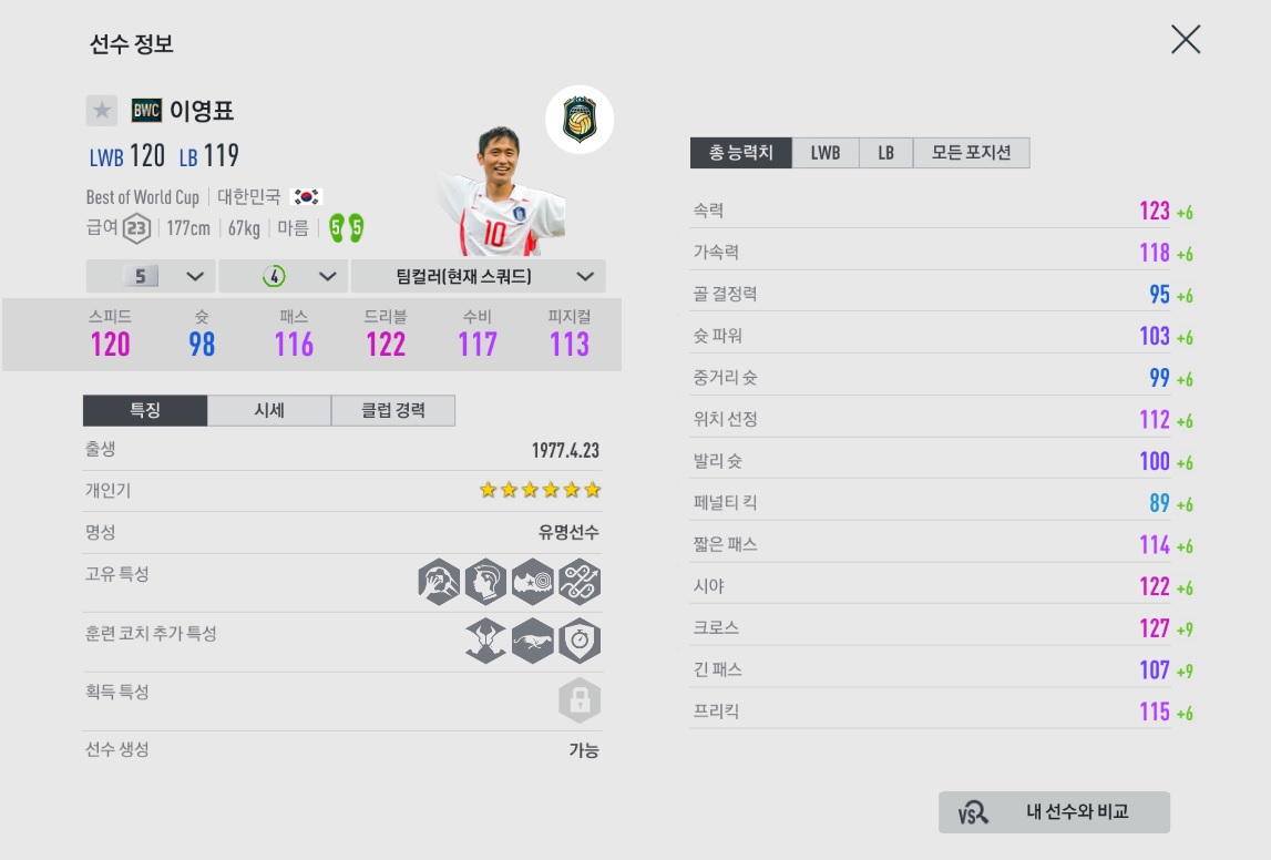 이영표보다 피지컬과 수비적인 능력이 좋은 윙백입니다.