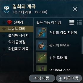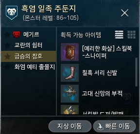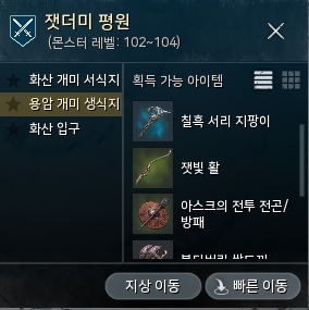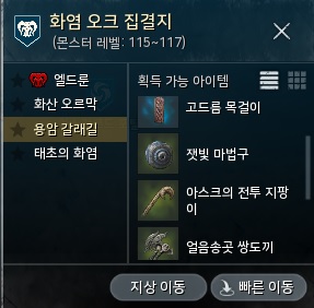 그나마 추천드리는 지역은 용암 신발이 드롭되는 불멸의 비탈입니다.
