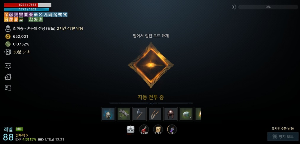 최하층 확장 구역을 1시간 사냥했지만 결정 파편이 나오지 않았습니다.
