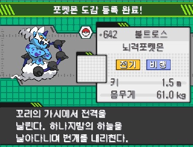 블랙 버전에서는 토네로스, 화이트 버전에서는 볼트로스를 만날 수 있습니다.