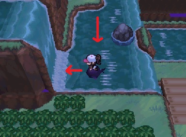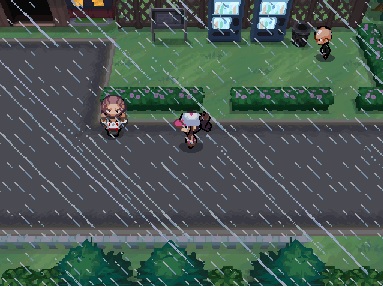 맵에 비가 내릴 때 40레벨 미만인 포켓몬을 선두에 세우고,