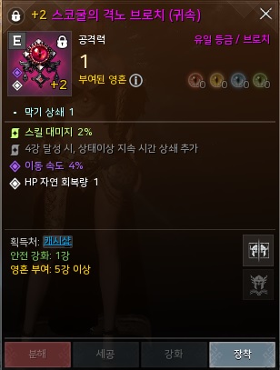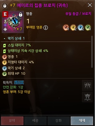 브로치는 5강부터 강화 단계마다 영혼이 부여됩니다.