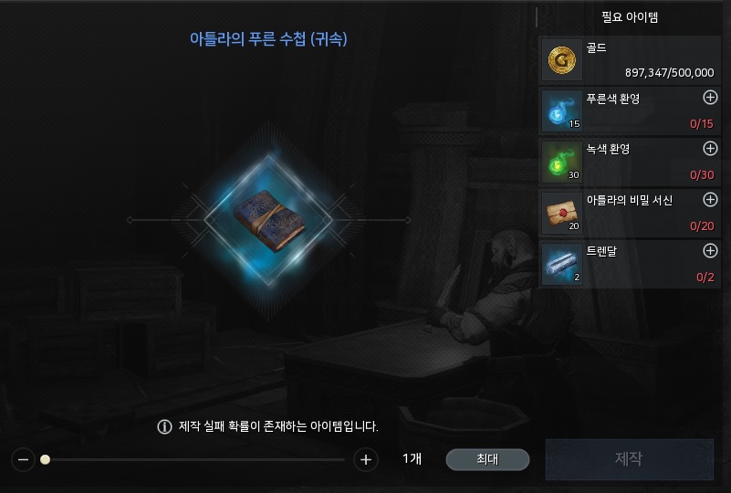 아틀라의 푸른 수첩 제작 확률은 20%입니다.