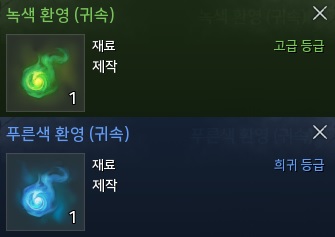 고급 스킬북 분해 시 : 녹색 환영 1개 획득