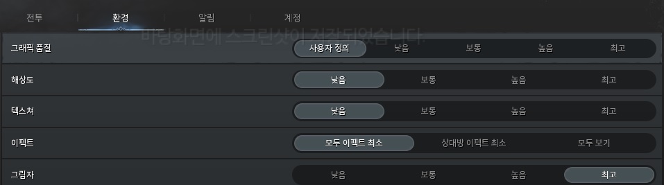 환경 - 그래픽 품질 - 그림자를 최고로 설정하면 샤무크 뒤의 나무의 그림자가 보입니다.