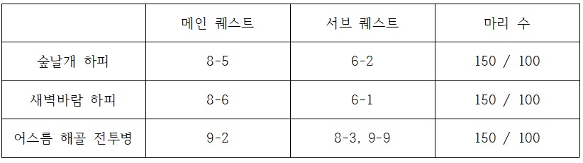숲날개 하피, 새벽바람 하피의 순서가 거꾸로긴 하지면 메인 퀘스트와 병행 가능합니다.