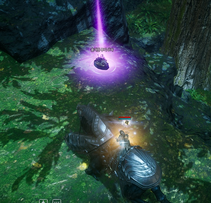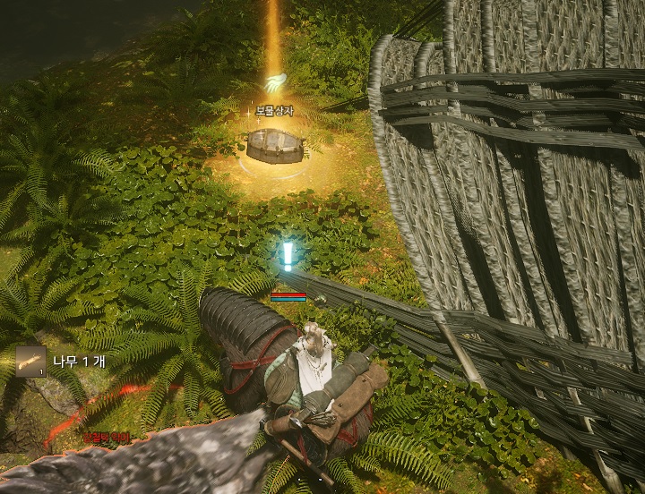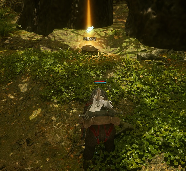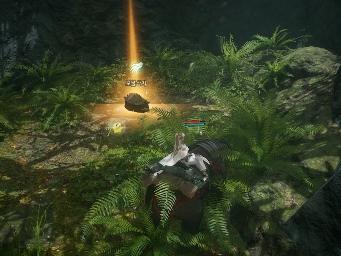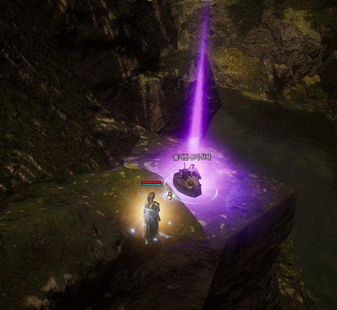 언덕을 올라가 끝까지 가시면 무기형상 보물상자가 있습니다.