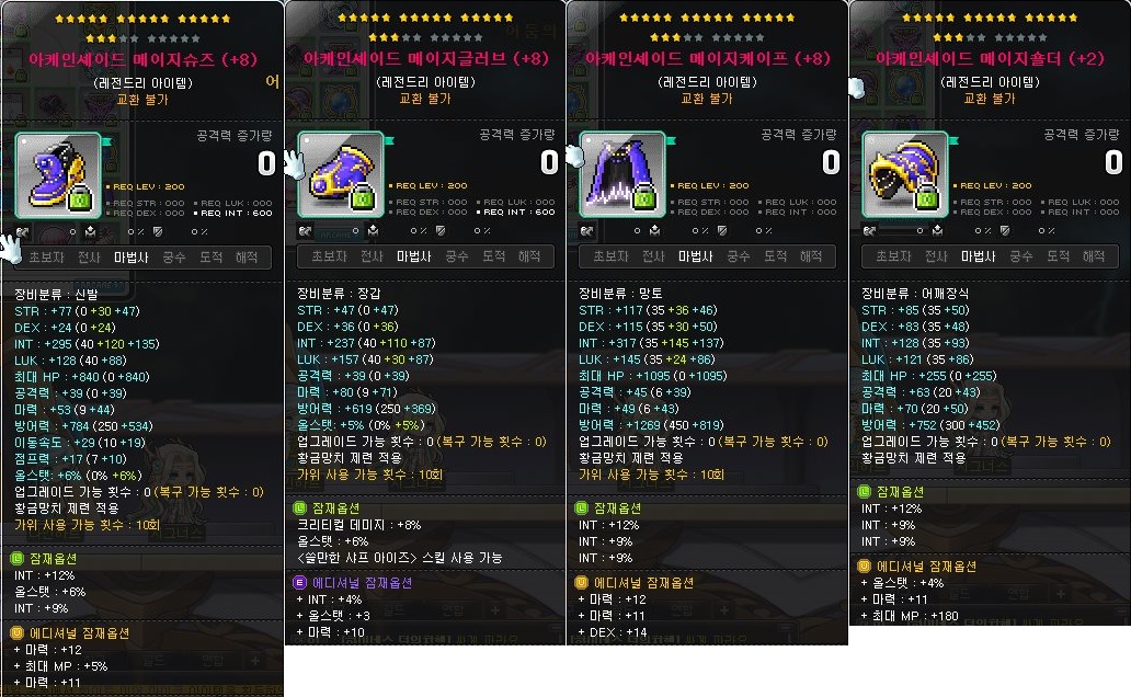 이제는 아케인셰이드 방어구의 가격이 매우 저렴해져 가성비로 18성 아케인셰이드 방어구를 사용하시는 것도 나쁘지 않을 듯 합니다.