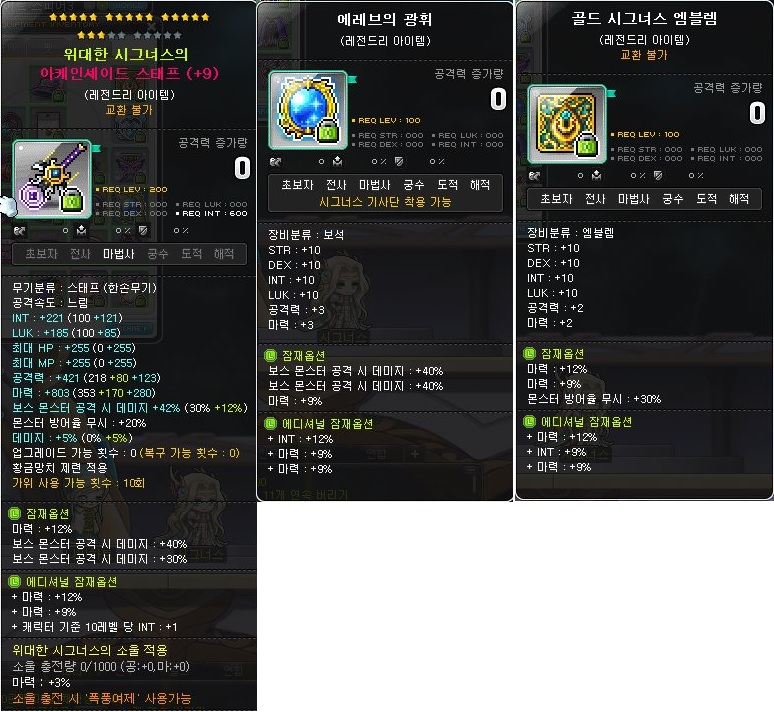 하지만 130~140급 추옵의 앱솔랩스 장비와 달리 아케인셰이드 장비는 140급 이상을 주로 사용하므로 21성 정도의 효율을 보여줍니다.