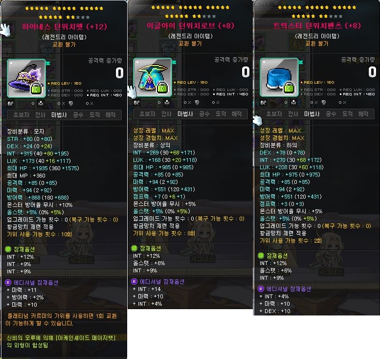 상의와 하의는 이그드라실 주문서도 1장 사용했습니다.