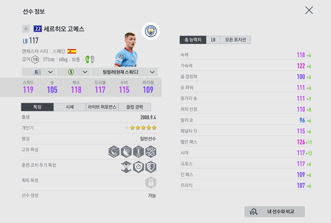 아주 좋은 피지컬과 빠른 속도를 가진 풀백입니다.