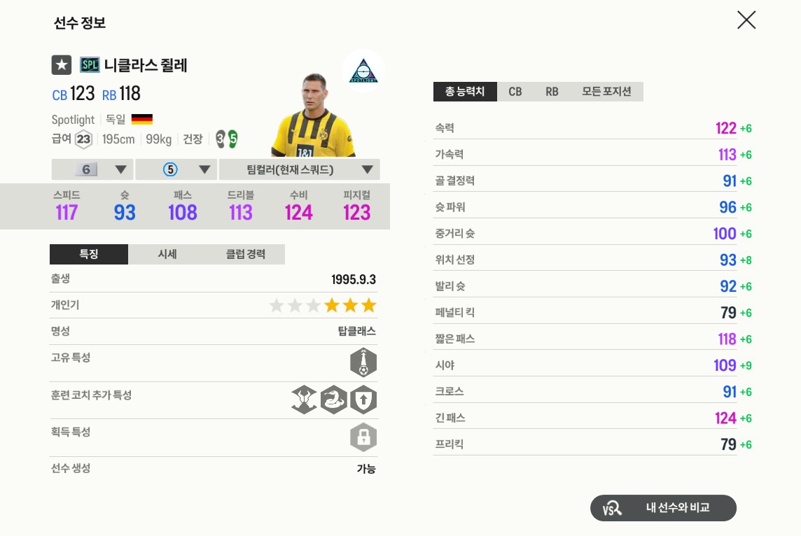 좋은 피지컬과 수비 AI, 넓은 태클 범위를 가지고 있습니다.