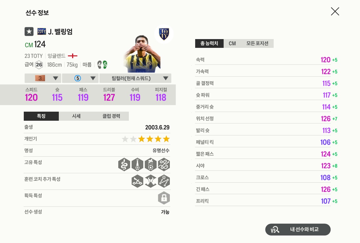 시즌이 올라갈수록 육각형이 되어가고 있는 벨링엄입니다.