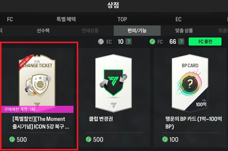 상점에 가서 ICON 5강 복구권을 구매해 줍니다.