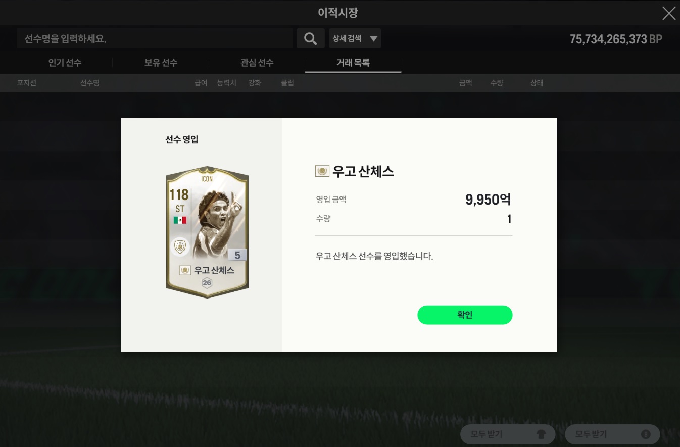 아이콘 TM 교환으로 가 교환할 아이콘 선수를 투입해 줍니다.