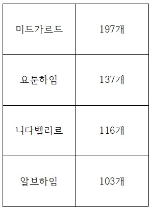 미드가르드 197개 + 요툰하임 48개 총 245개가 필요합니다.