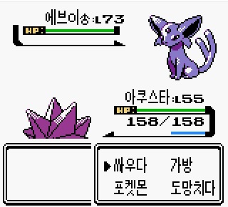 아쿠스타를 꺼내면 에브이가 나옵니다.
