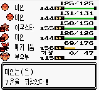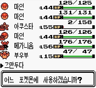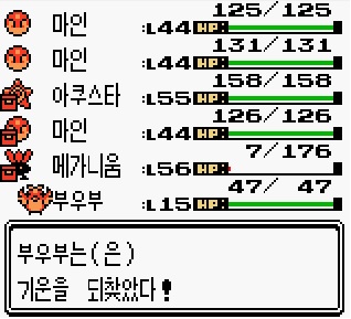 부우부를 꺼내 최대한 죽은 포켓몬을 많이 살려줍니다.