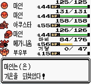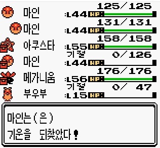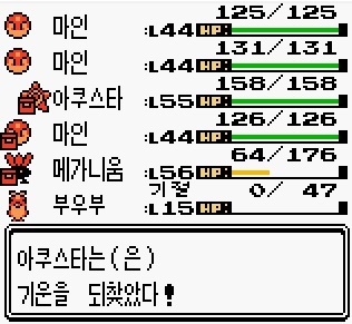 메가니움으로 버티며 죽은 아쿠스타와 부우부를 살려줍니다.
