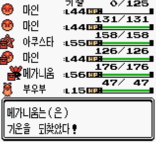 어차피 선공을 가져오지 못하므로, 공격하는 대신 메가니움을 살려 주었습니다.