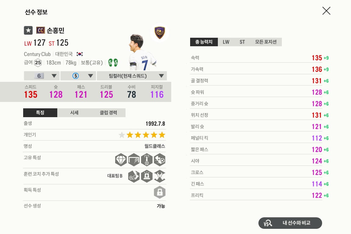 안 그래도 속도가 장점인 차범근, 손흥민, 차두리의 성능이 극대화됩니다.