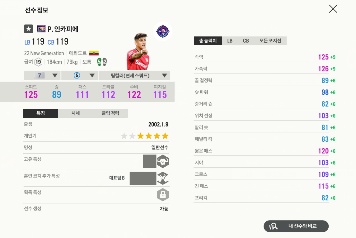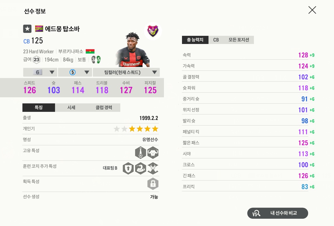 좋은 피지컬에 준수한 수비 AI, 빠른 속도를 가지고 있습니다.
