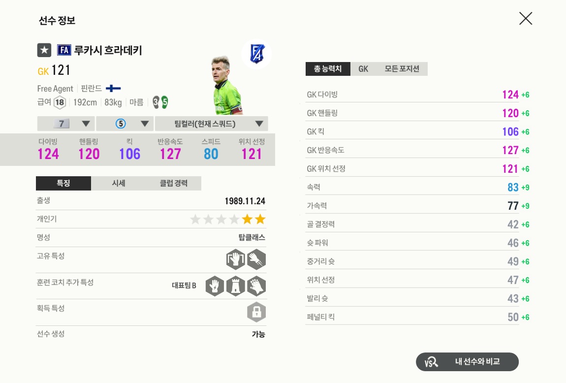 적당한 키에 준수한 특성을 가진 무난무난한 키퍼입니다.