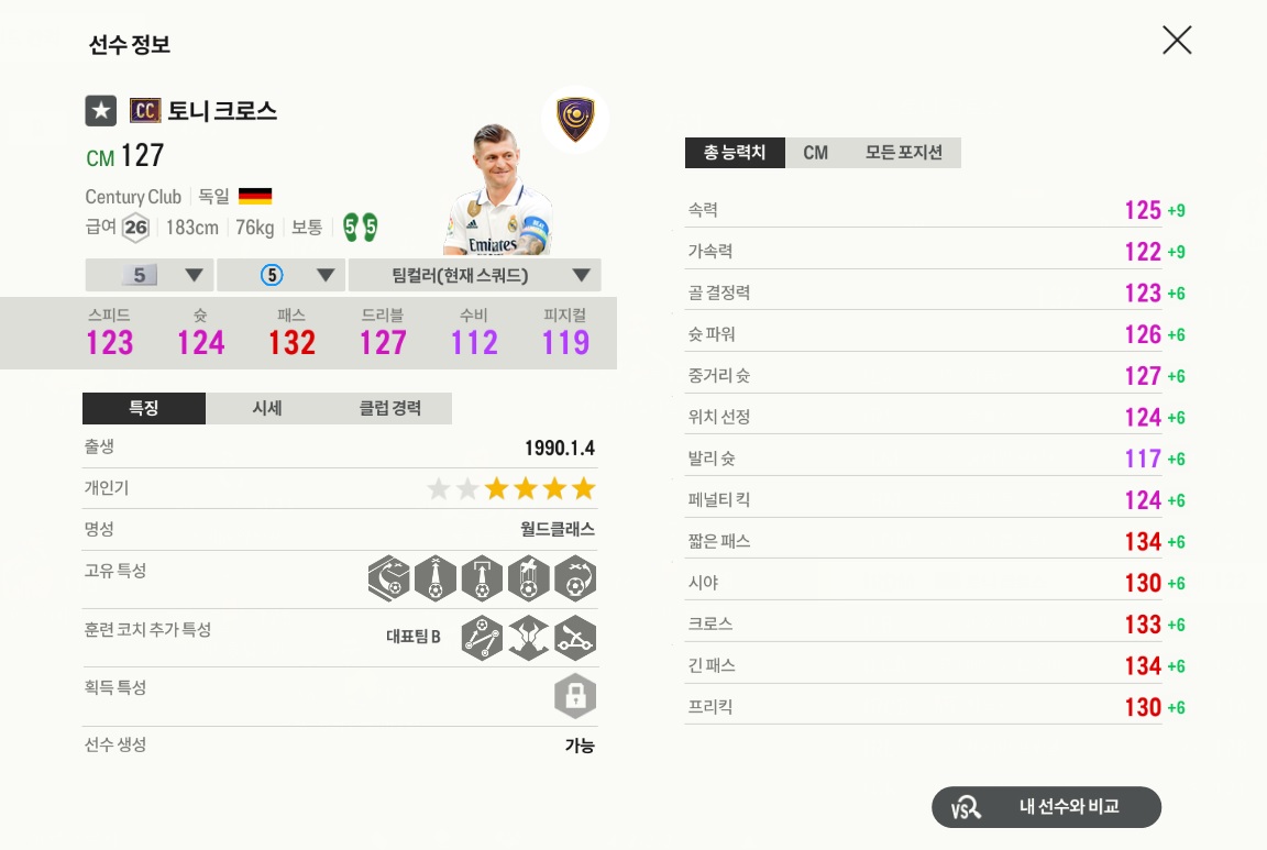 체감과 수비가 좋아지고, 크로스가 조금 낮아진 보급형 베컴 같은 느낌입니다.