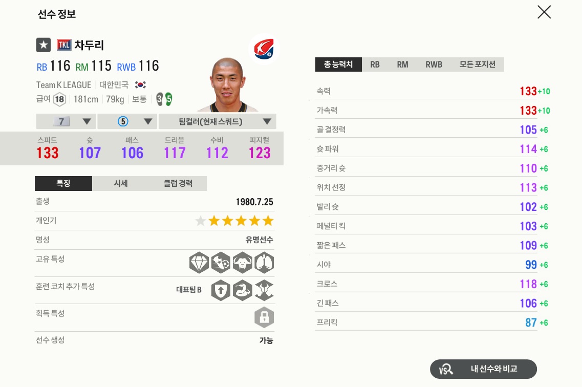 오버롤이 낮아 이제는 힘이 빠졌을 것이라 생각한 차두리입니다.