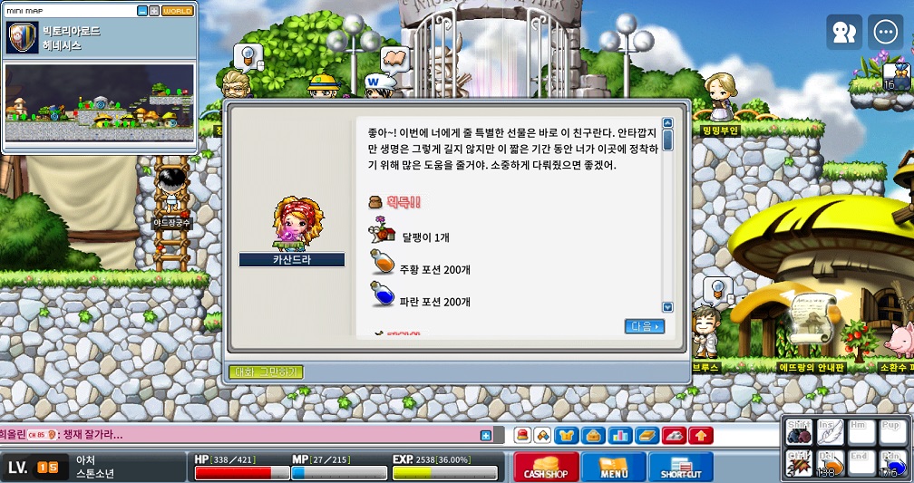 페티트를 찾아가 메이플 맴버샵 퀘스트를 깨면 9레벨 후반이 됩니다.