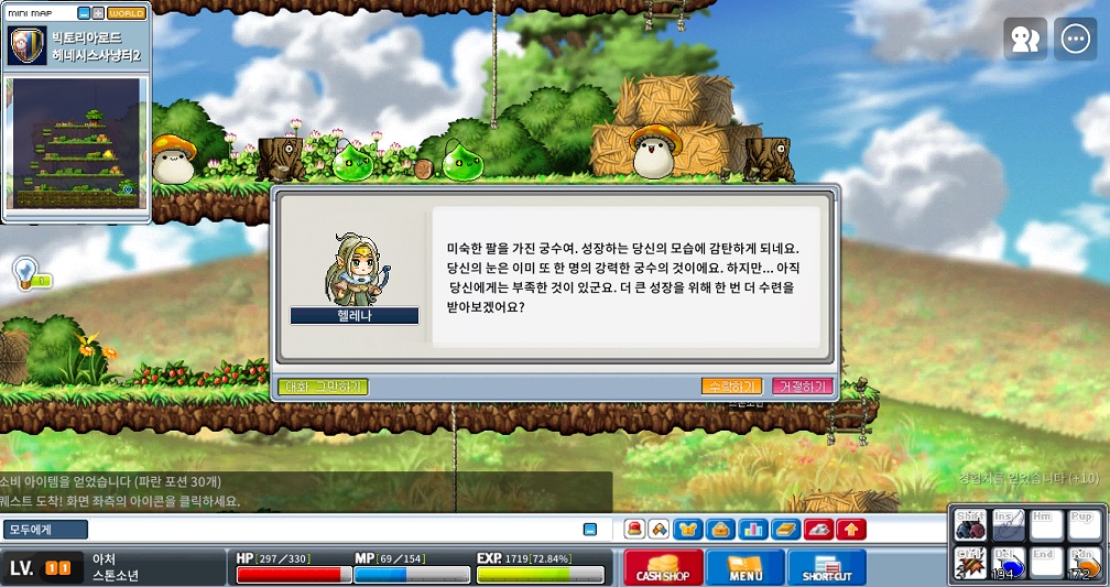 헬레나가 주는 초보 궁수 퀘스트를 클리어 후 13레벨을 달성했습니다.