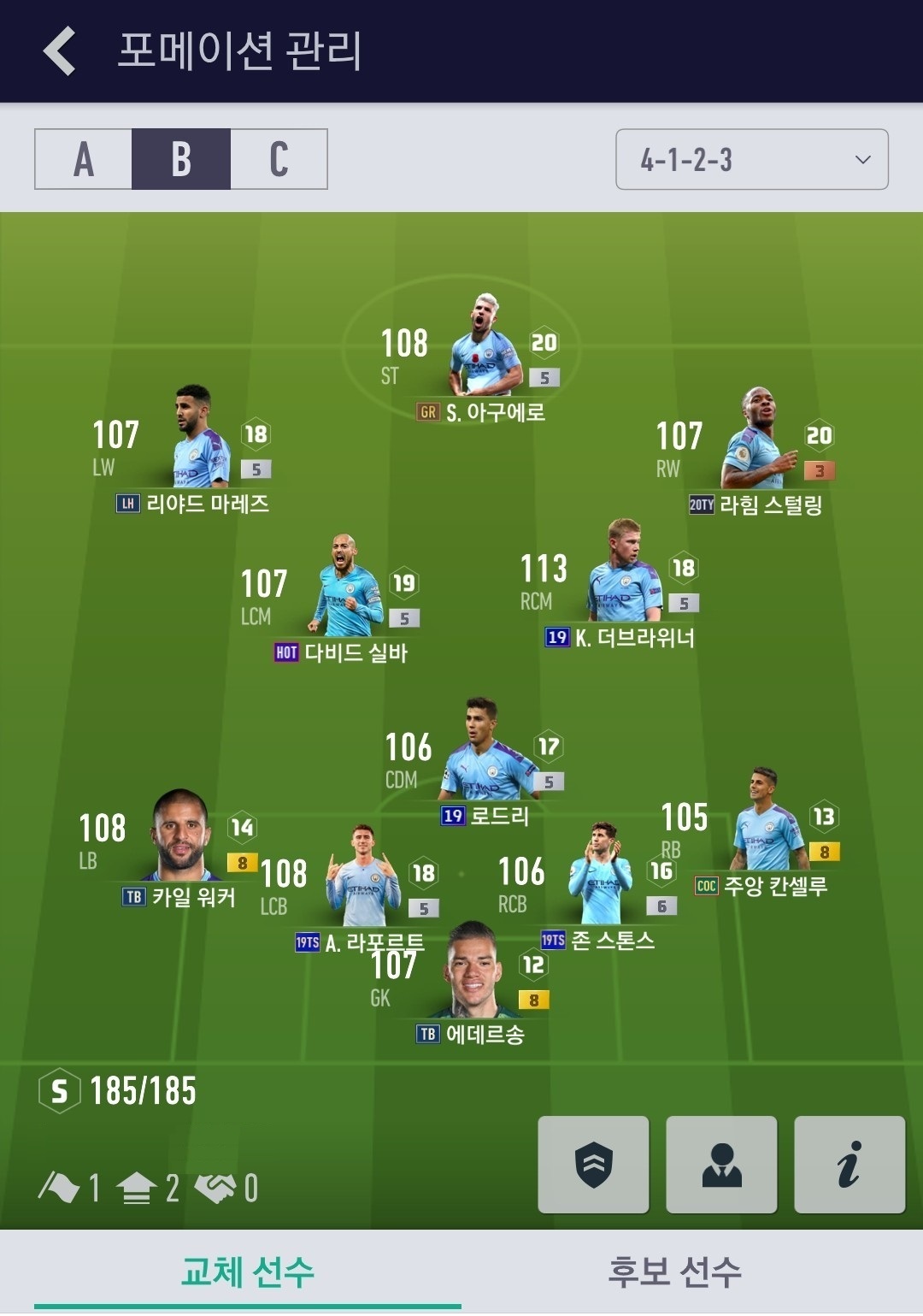카일 워커와 에데르송의 미니 페이스온을 변경해보도록 하겠습니다.
