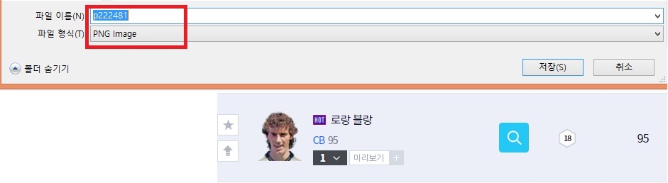 player, players 폴더에서 기존 사진 파일을 검색해 줍니다.