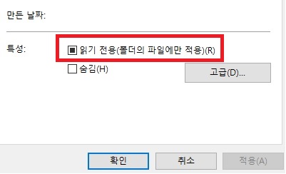 덮어쓰기한 사진의 속성을 클릭해 읽기 전용에 체크해 줍니다.