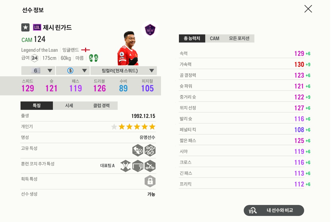 양발에 맨유 케미로 가속도가 올라 느린 느낌이 덜해졌습니다.