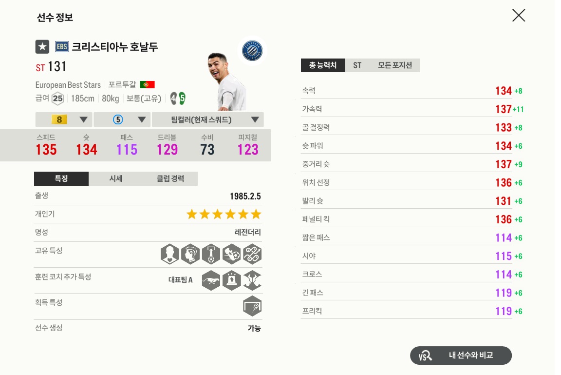 수비 능력치도 좋아 사이드를 막기 좋습니다.