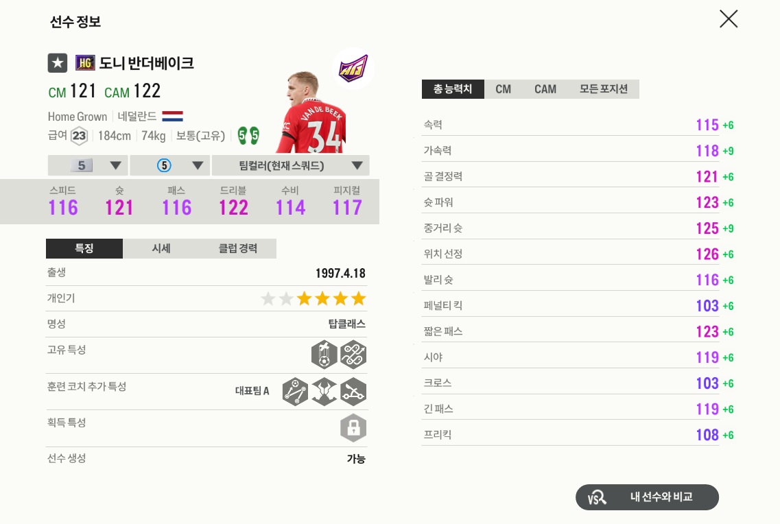 측면에 사용하기는 약간 느리지만 엄청난 크로스와 연계 능력을 가지고 있습니다.
