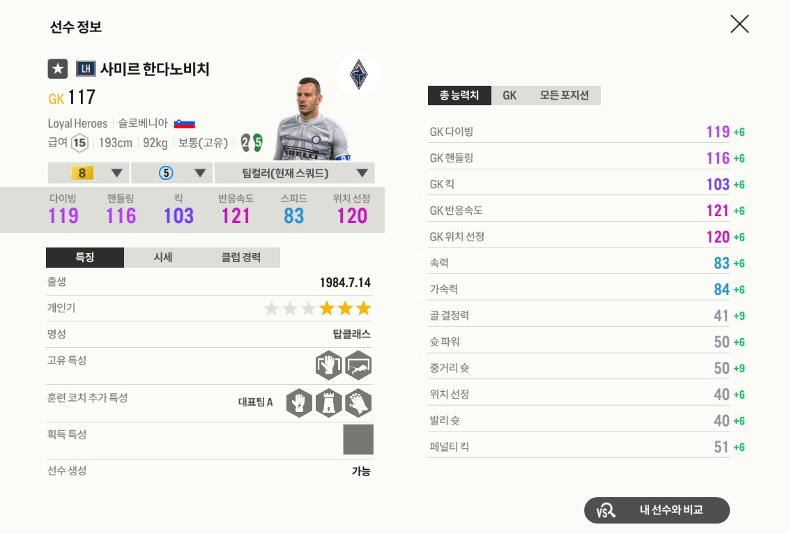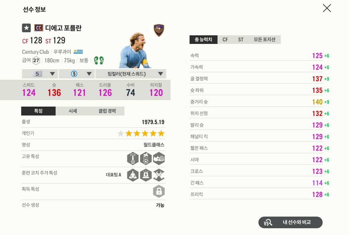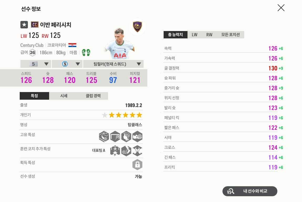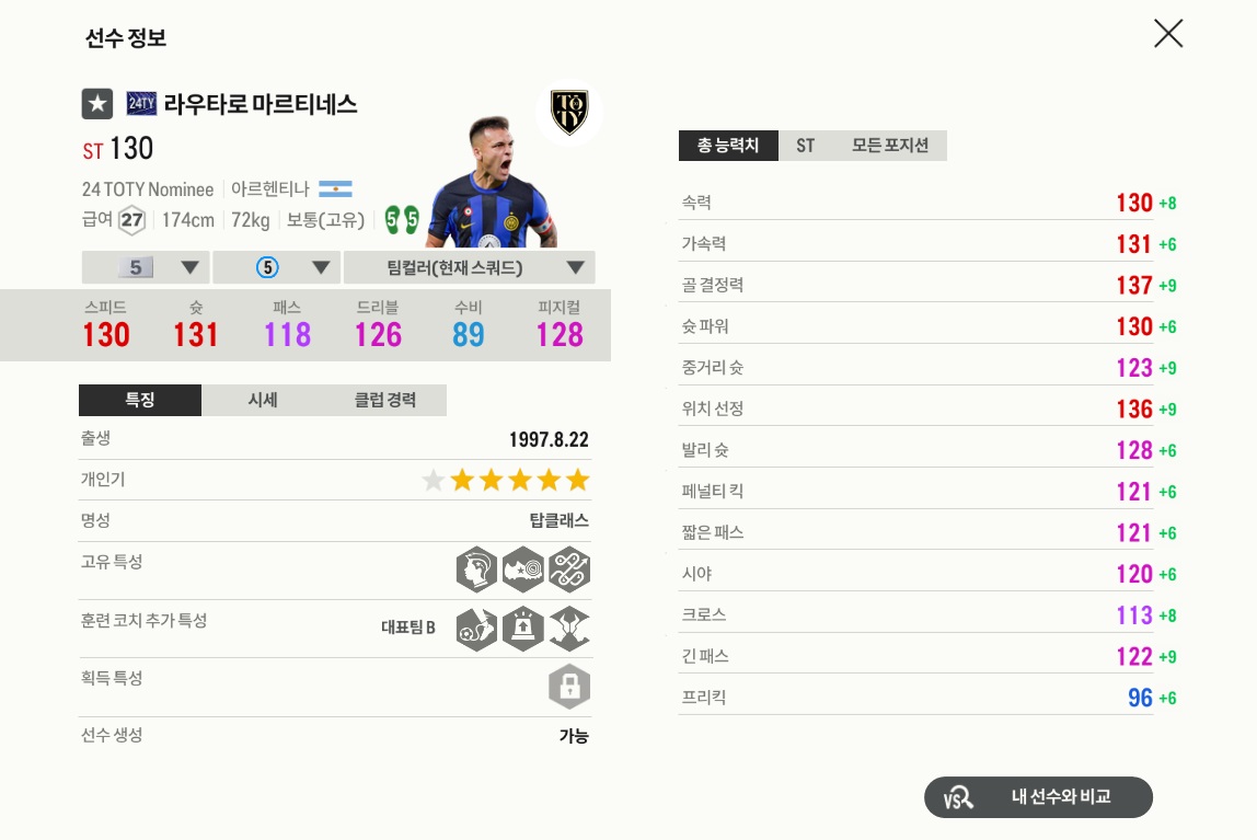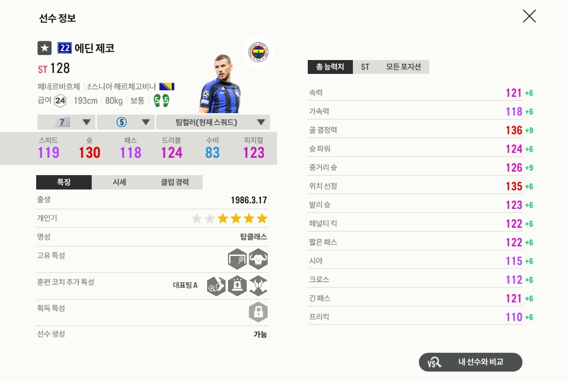 연계와 슈팅, 수비 모두 능력치가 좋습니다.