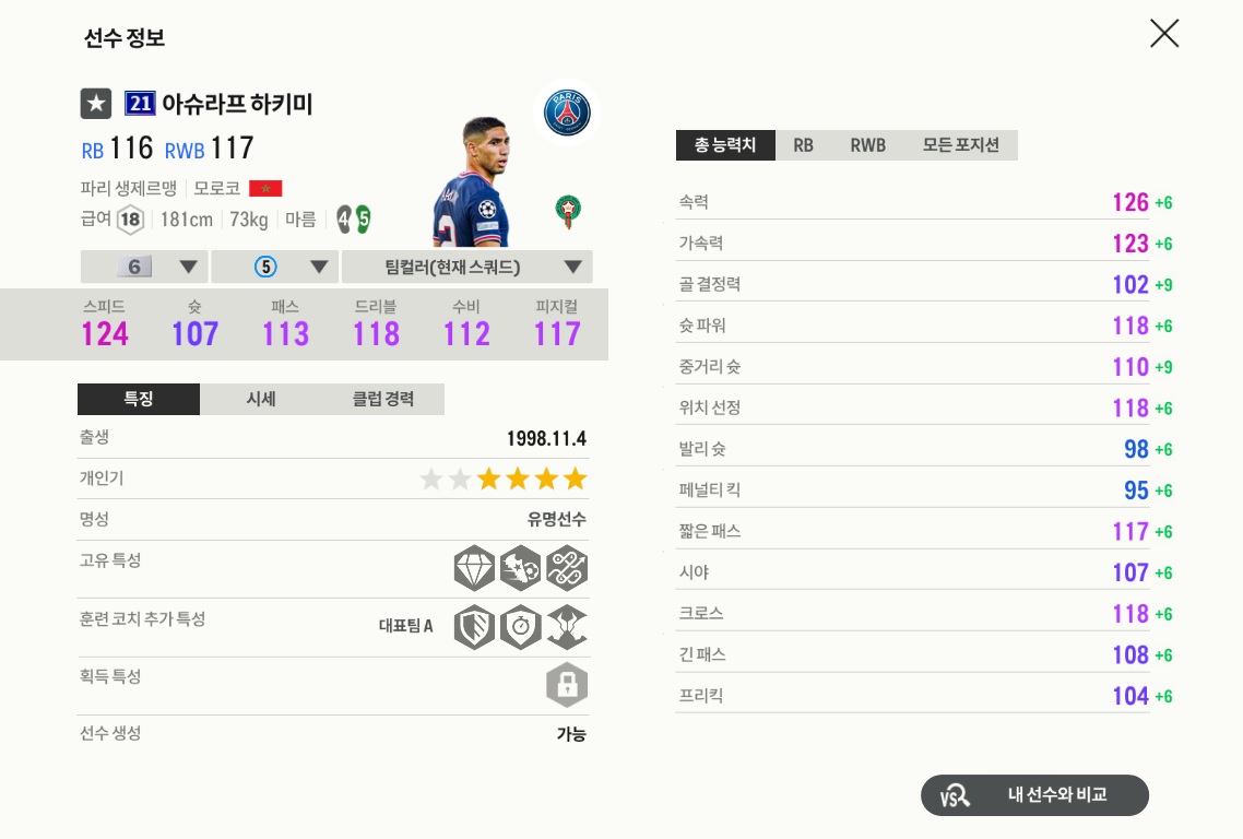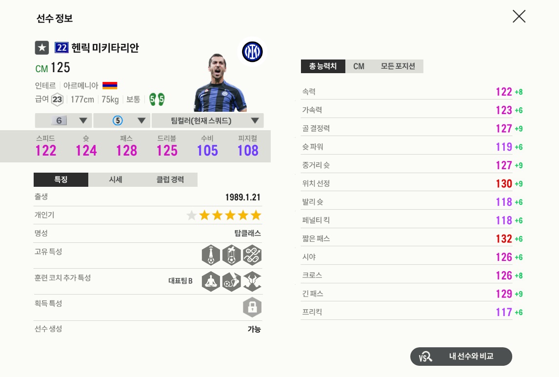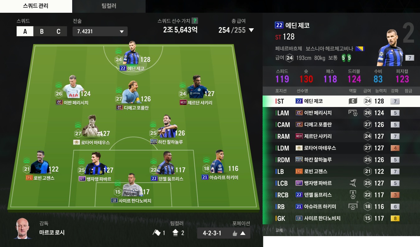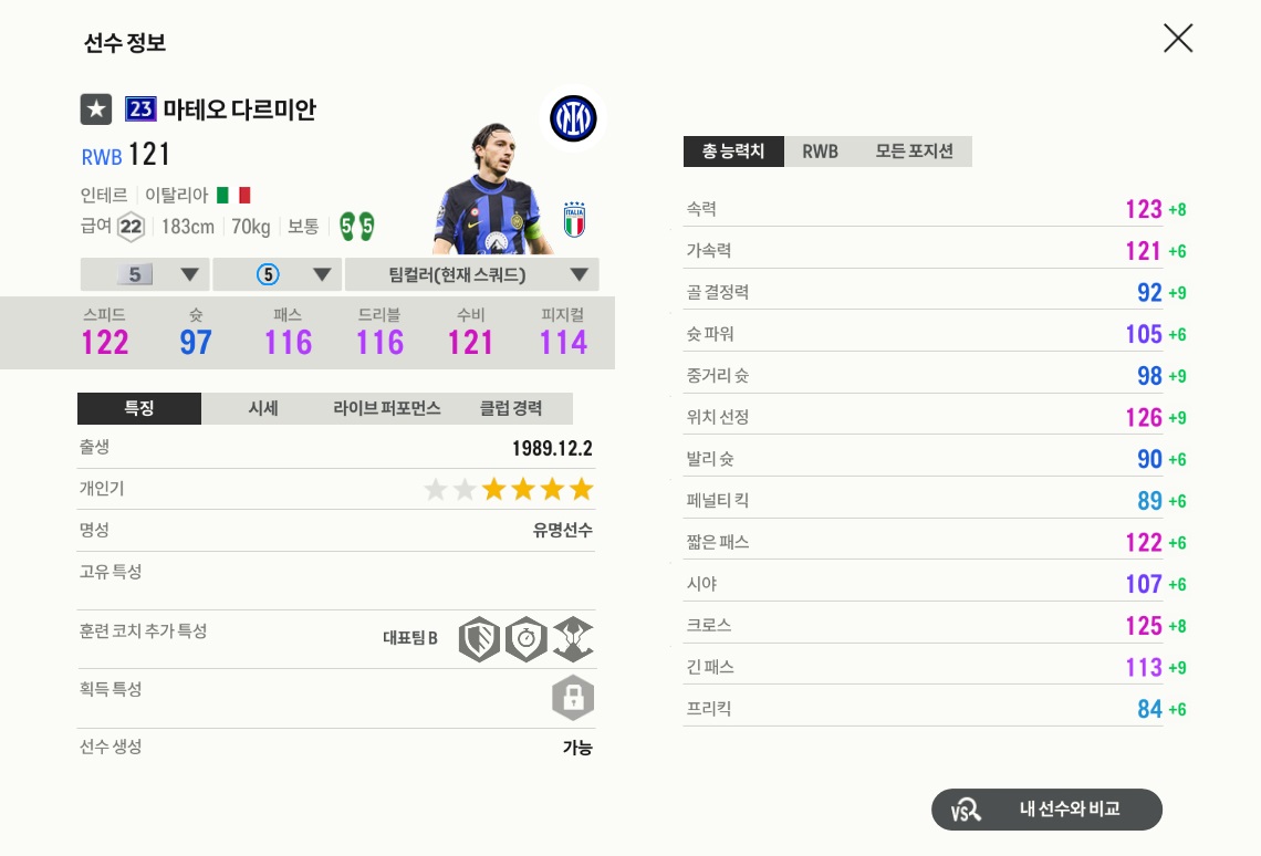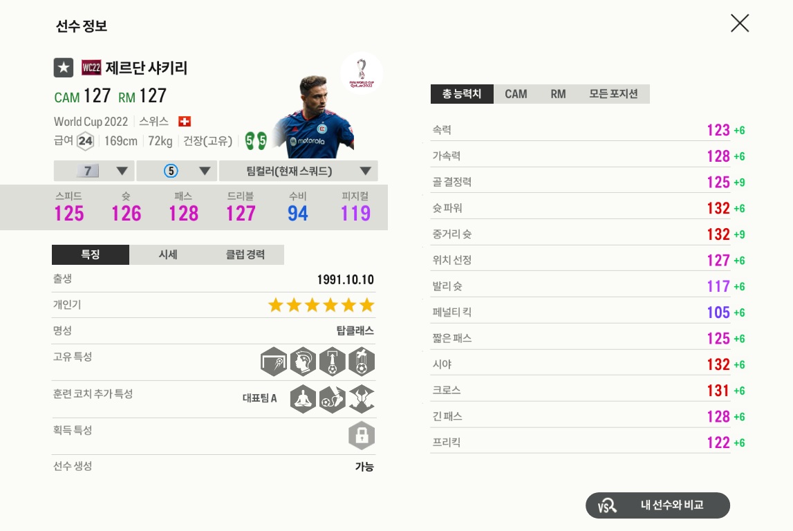 연계와 슈팅, 수비 모두 능력치가 좋습니다.