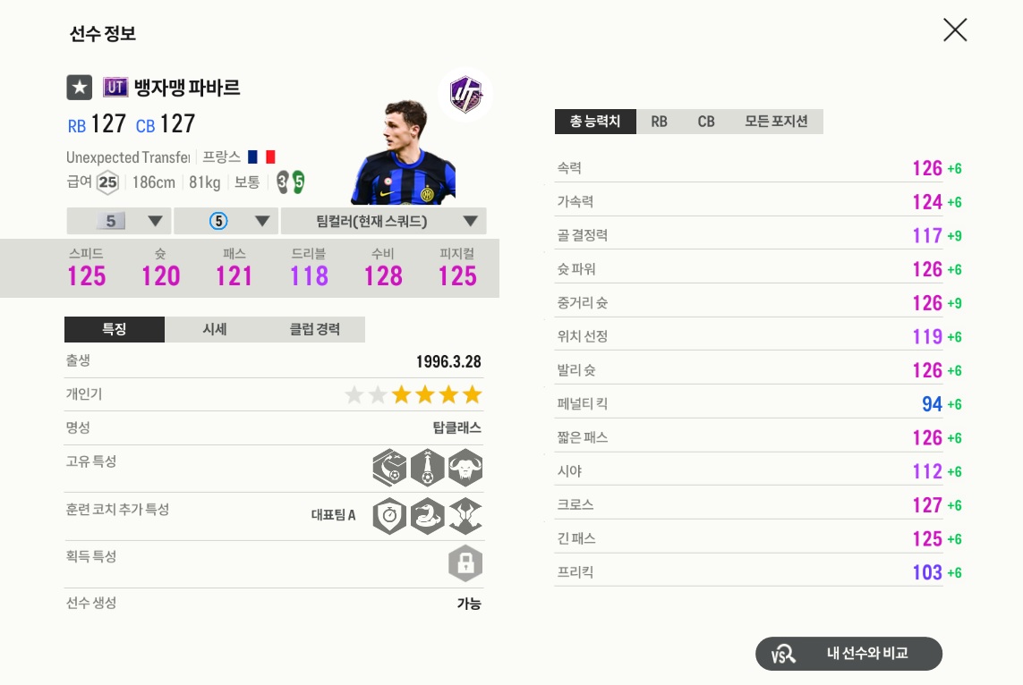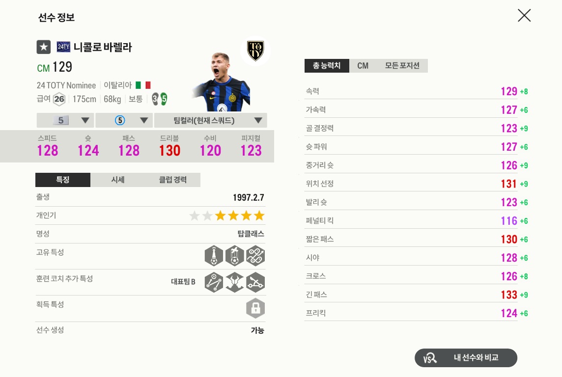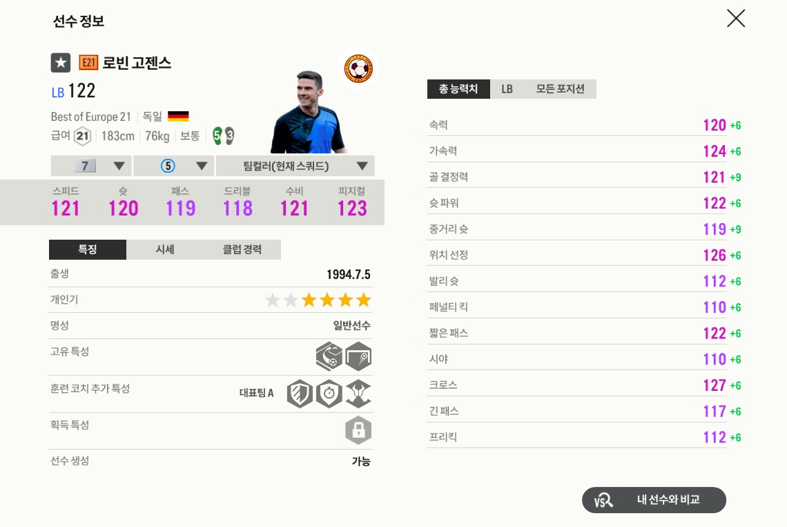 좋은 크로스 능력치와 준수한 수비 능력을 가지고 있습니다.