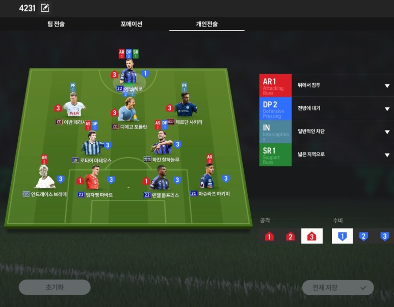 인테르는 4231 포메이션이 정배인 것 같습니다.