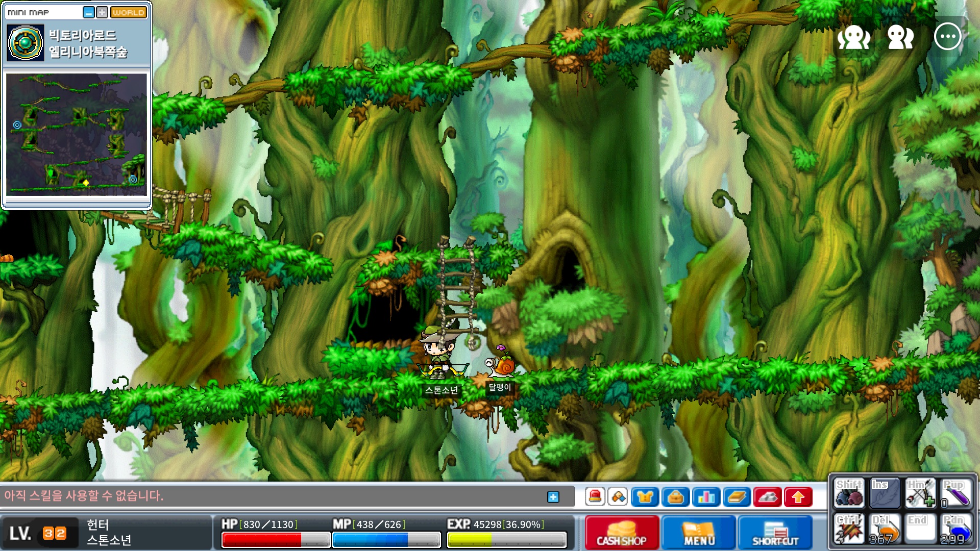 로니는 엘리니아 북쪽숲 - 북쪽숲 나무통로에 있습니다.