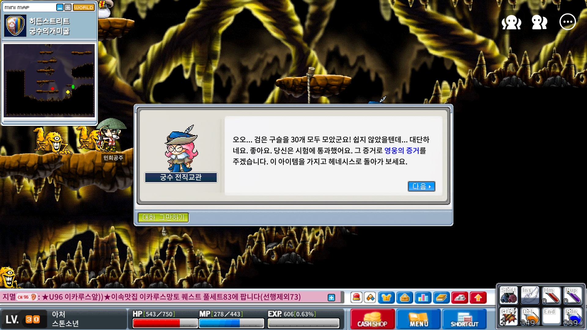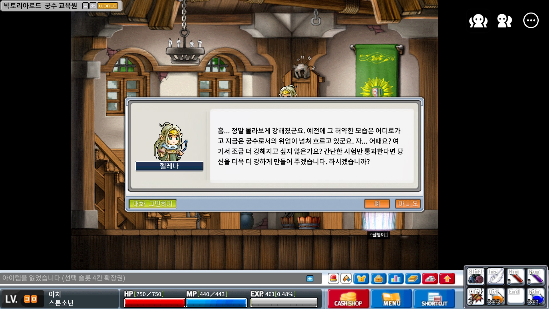 헤네시스 궁수 교육원에 가 2차 전직 퀘스트를 진행해 주도록 하겠습니다.