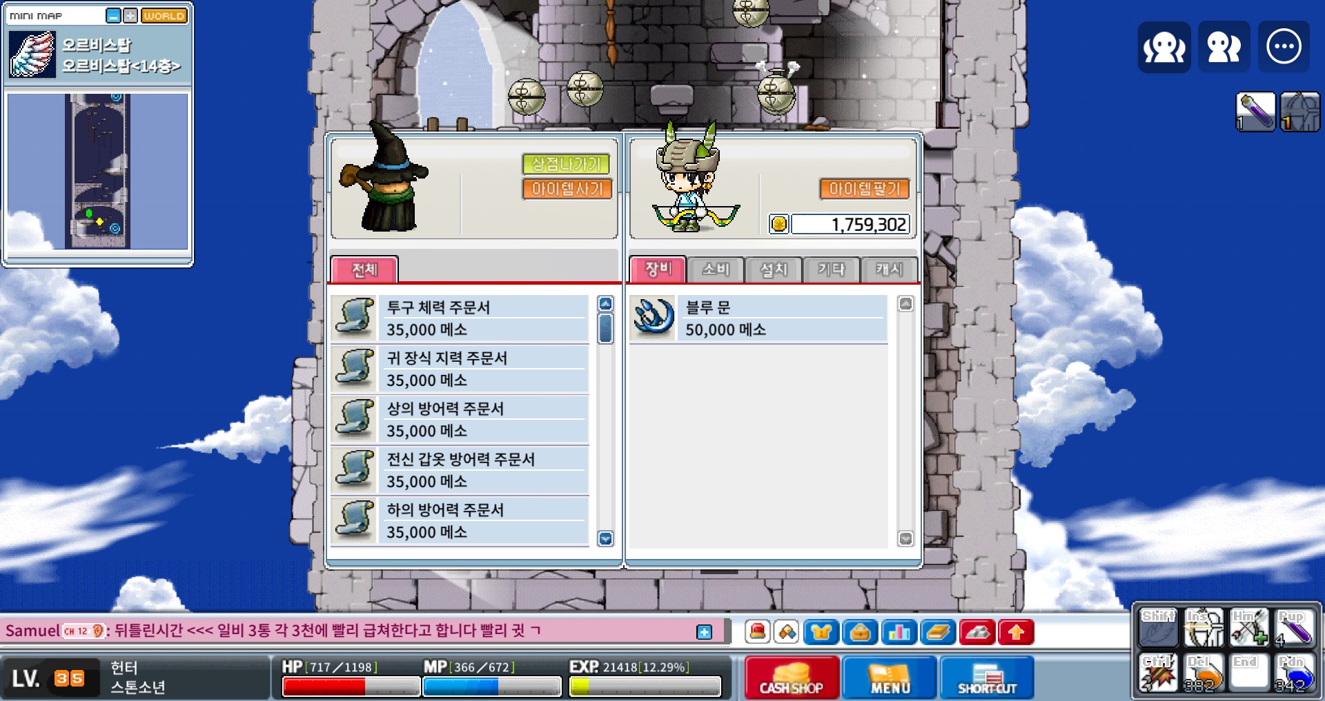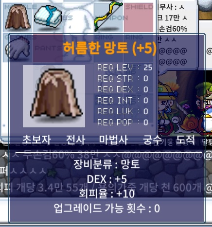 망토 민첩성 주문서 5장을 구매해 떡허망도 만들었습니다.