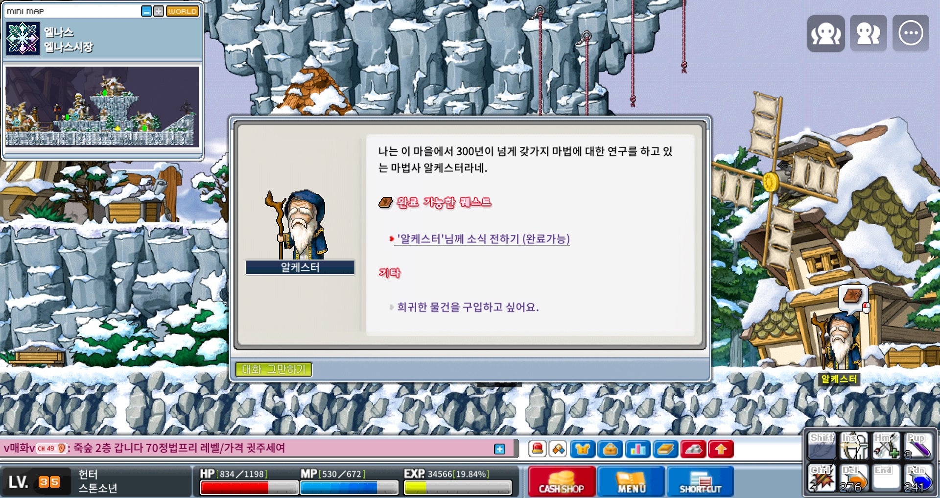 엘나스에 도착해서 알케스터에게 경험치 쿠폰을 얻어 주었습니다.