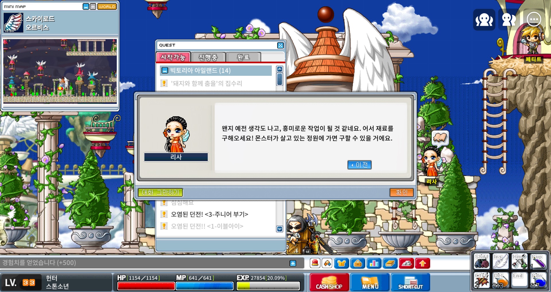 일단 연속 퀘스트인 에오스탑 청소를 클리어해 주었습니다.