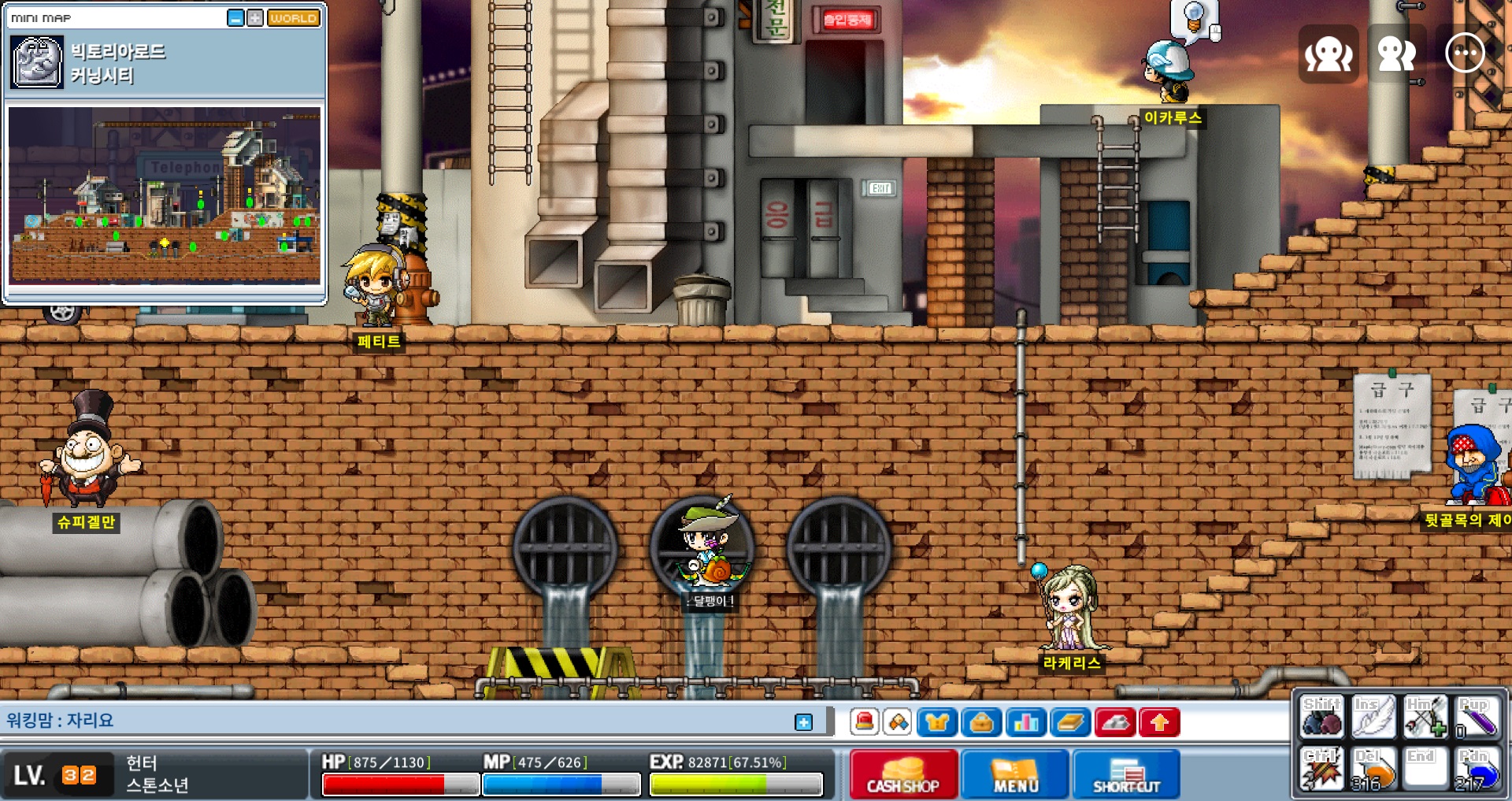 40레벨 무기만 구하면 장비 셋팅은 일단 끝났습니다.